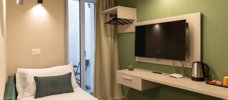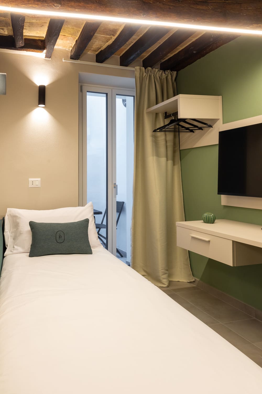 Nonostante le dimensioni più contenute, la nostra stanza singola è progettata per offrire tutto ciò di cui avete bisogno per un soggiorno piacevole e senza complicazioni. Speriamo che il vostro tempo qui sia rilassante e confortevole.