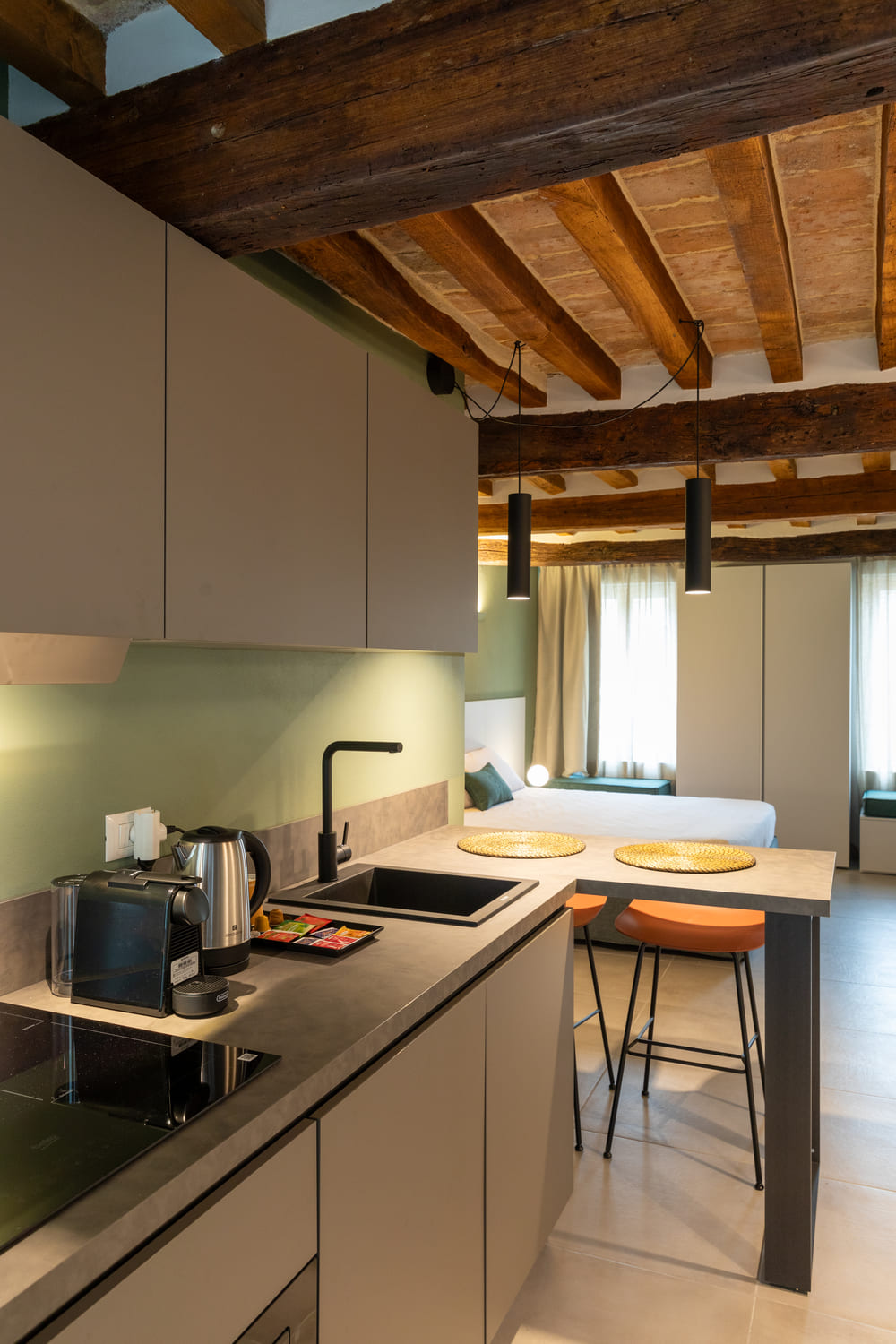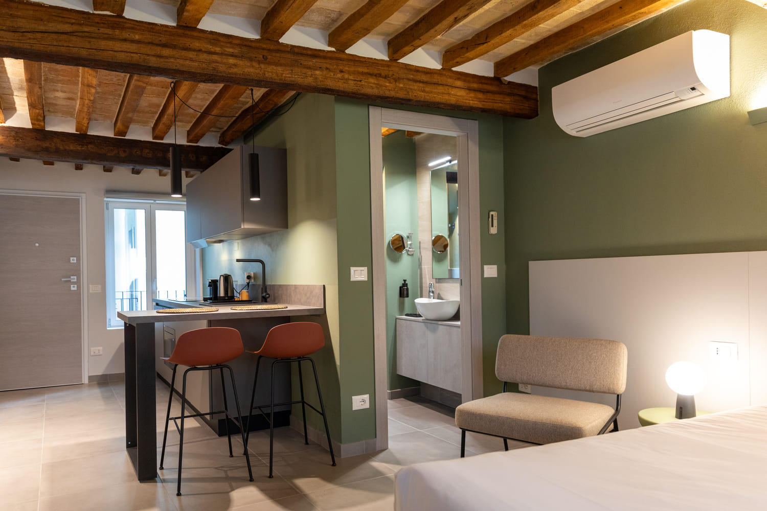 Monolocale di 30 mq, situato al terzo piano, questo luminoso monolocale è progettato per massimizzare l’utilizzo dello spazio, offrendo una zona living, una cucina attrezzata e una zona notte, il tutto arredato con stile e praticità.
